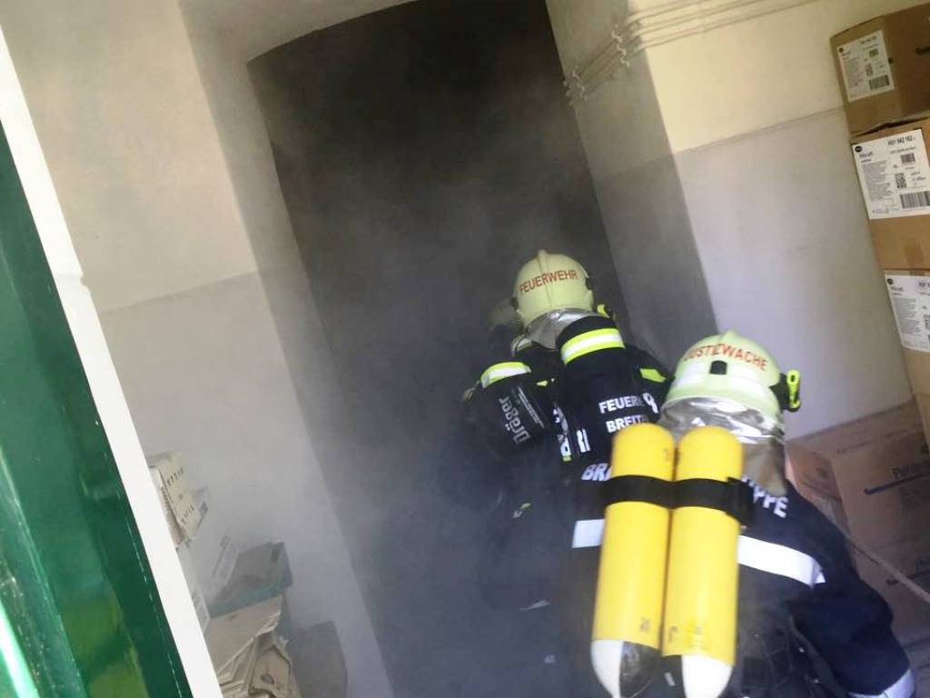 Die Brandschutzgruppe der Justizanstalt suchte mit schwerem Atemschutz gemeinsam mit den Feuerwehrtrupps nach der Person. Von außen wurde das Gebäude mit C-Rohren geschützt.