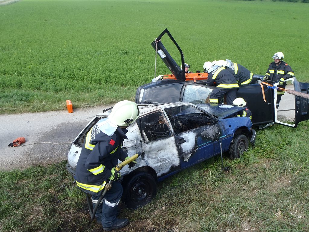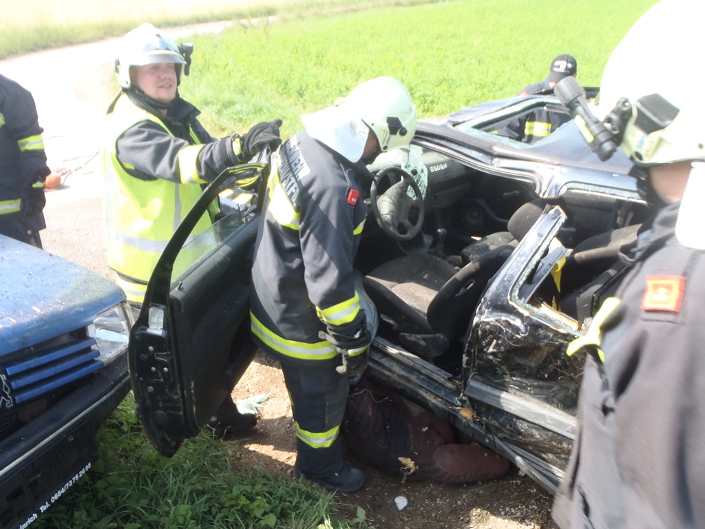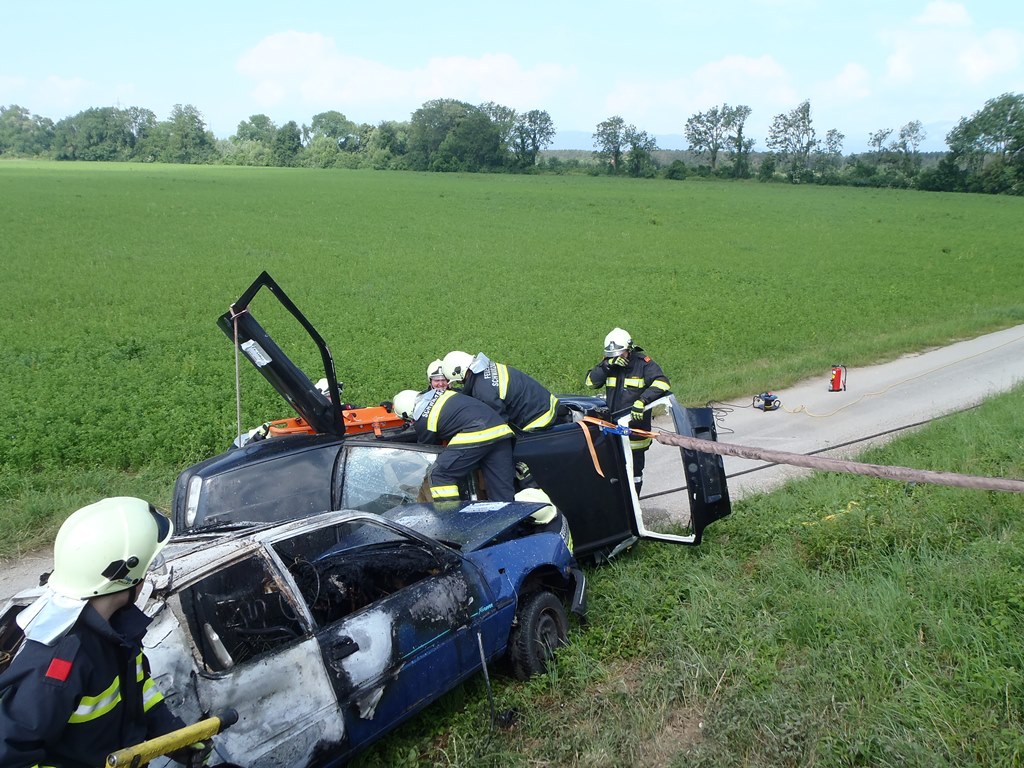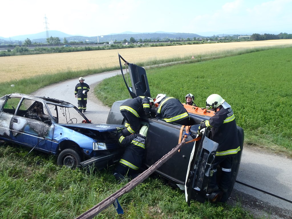 Am Sonntag, den 7. Juni 2015 fand die 3, Frühjahrsübung statt. Zwei Fahrzeuge kollidierten und fuhren eine Böschung runter. Dabei geriet ein Auto in Brand.