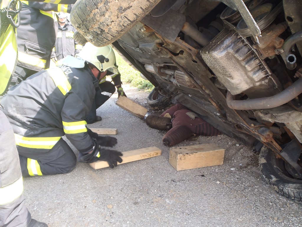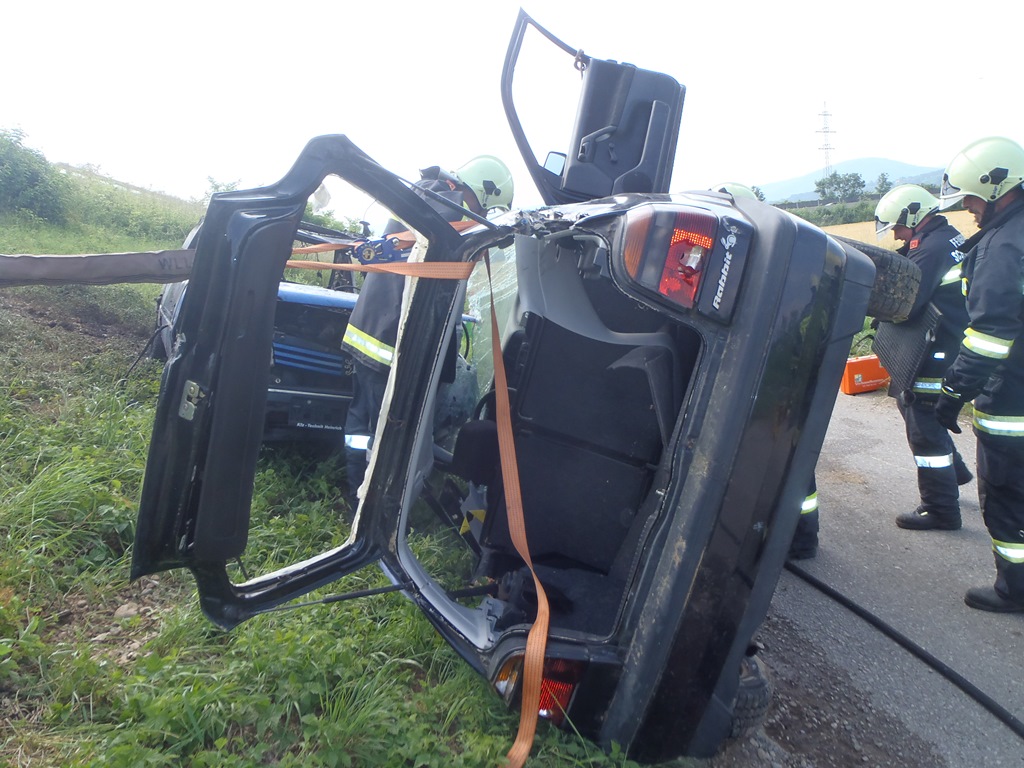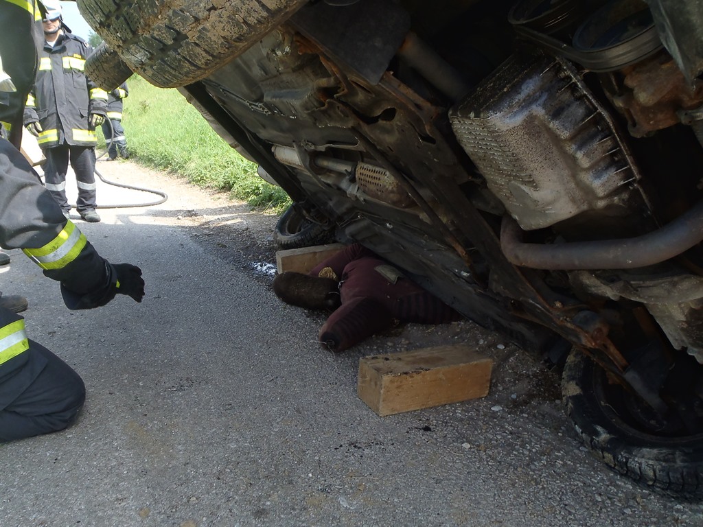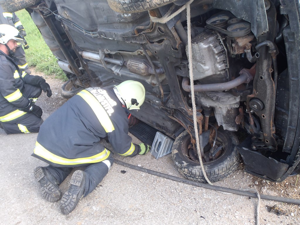 Neben dem Löschen des Fahrzeuges das in Vollbrand stand, wurde das zweite Fahrzeug, das auf der Seite lag, gesichert. Die verletzte Person die im Fahrzeug war, wurde mit dem Hydraulischen Rettungsgerät gerettet.