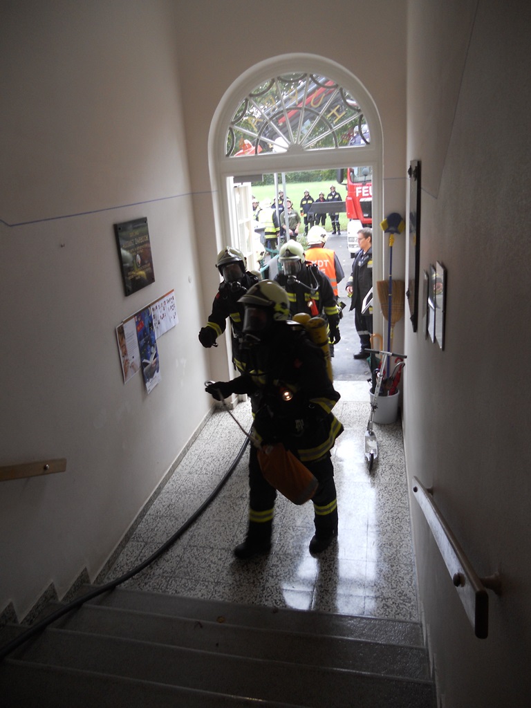 Die Schüler und Lehrer wurden teilweise mit dem Kran oder über Leitern aus den Klassenzimmern evakuiert.