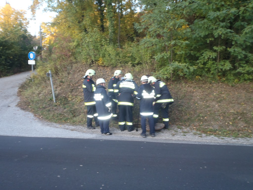 Im Anschluss kletterte man in einen dunklen Schacht hinunter. Dort wurden die verschiedenen Gefahren, wie Rohre und Leitungen, näher untersucht.