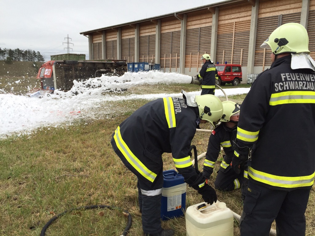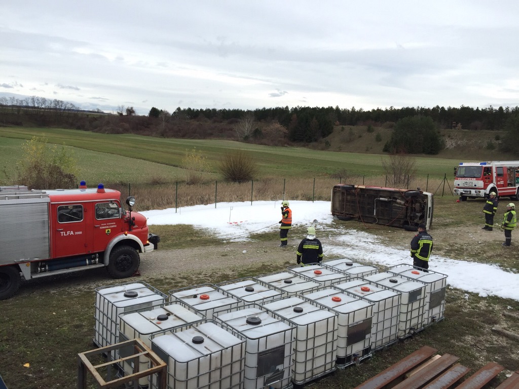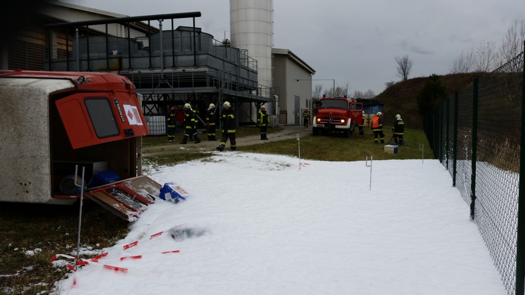 Am Sonntagvormittag, den 22. November fand im Heizkraftwerk Schwarzau die 3. Herbstübung statt. Übungsannahme war ein Verkehrsunfall mit ausgetretener Flüssigkeit.
