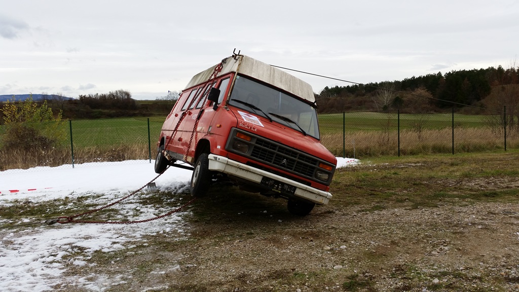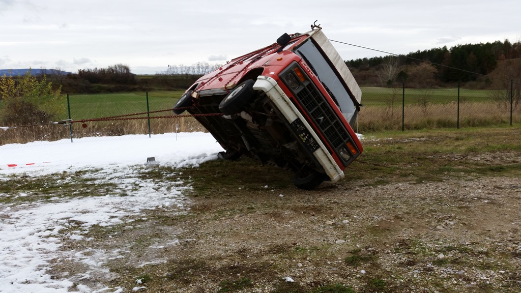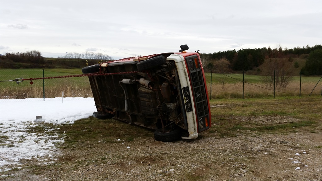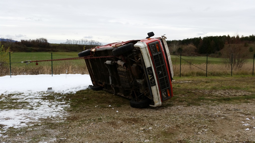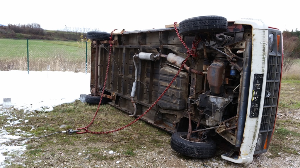 Im Anschluss stellte man das Fahrzeug mit Hilfe der beiden Seilwinden der Fahrzeuge auf.