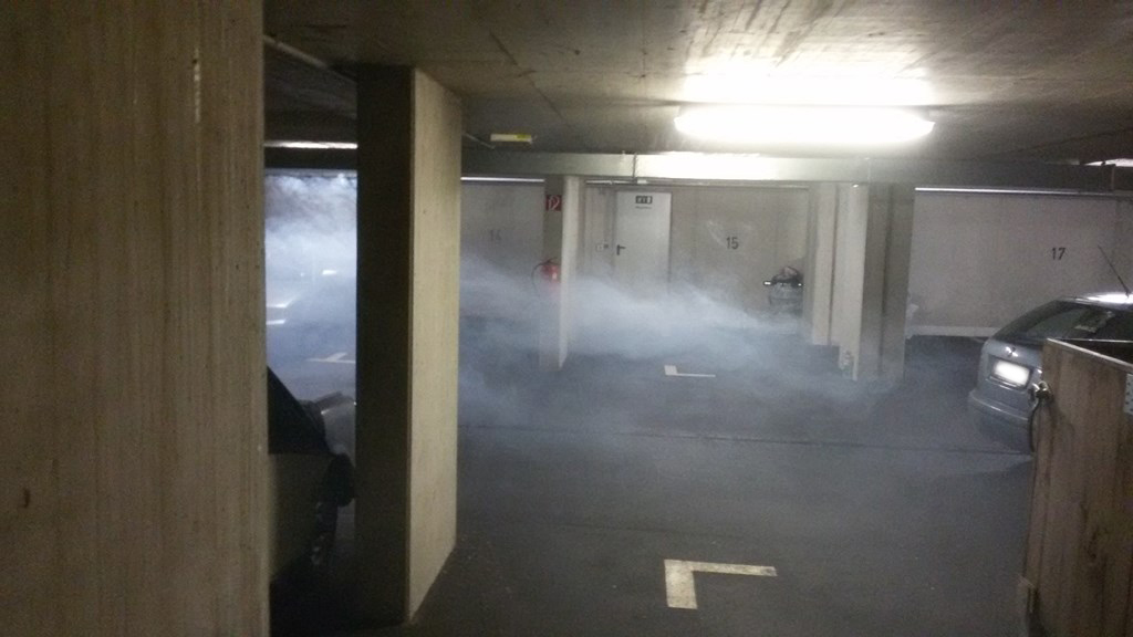 In der Tiefgarage der Siedlung begann es zu brennen und zwei Kinder, die sich dort aufhielten, konnten nicht mehr flüchten und wurden eingeschlossen. Eine Insassin eines einfahrenden PKWs traute sich nicht mehr aus ihrem Fahrzeug.