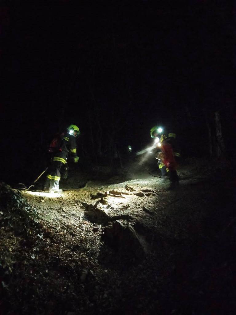 Es wurde eine Löschleitung den Berg hinauf verlegt und es wurde außerdem mit Löschrucksäcken gelöscht.