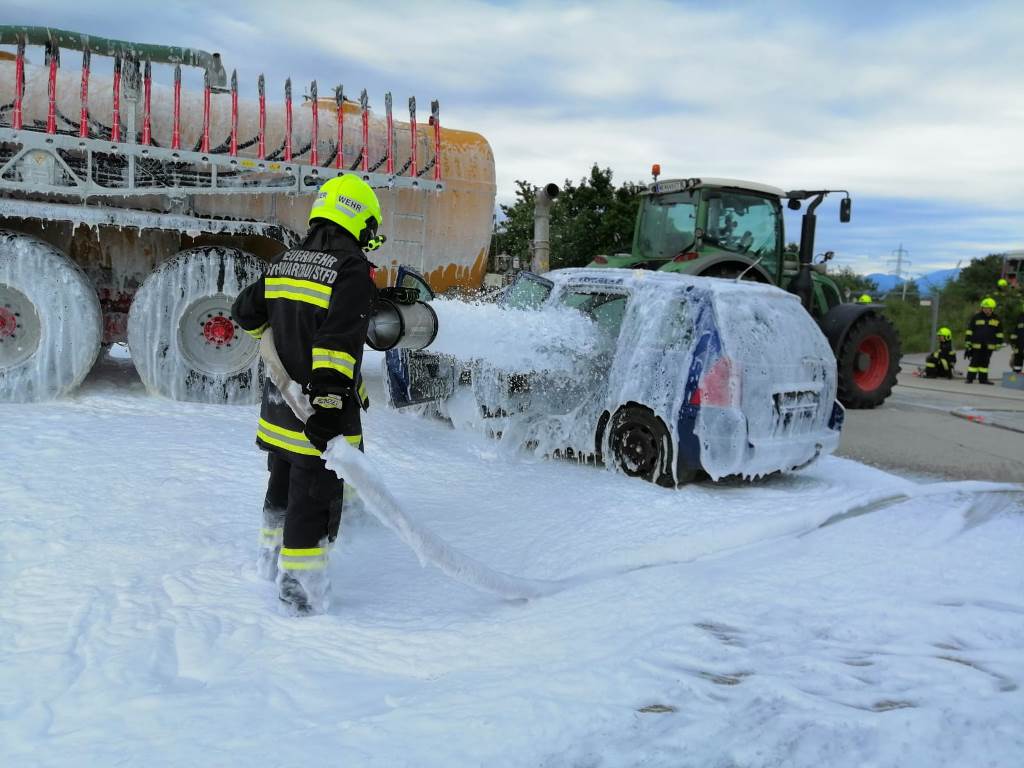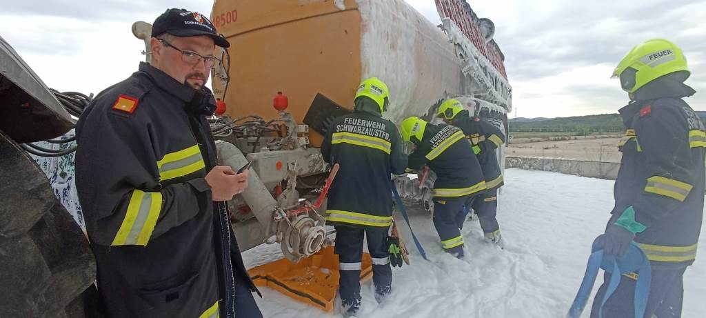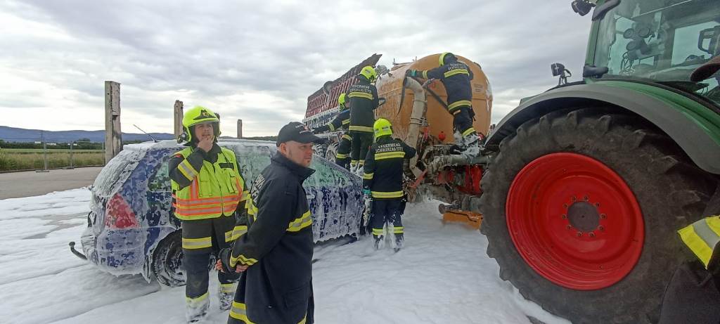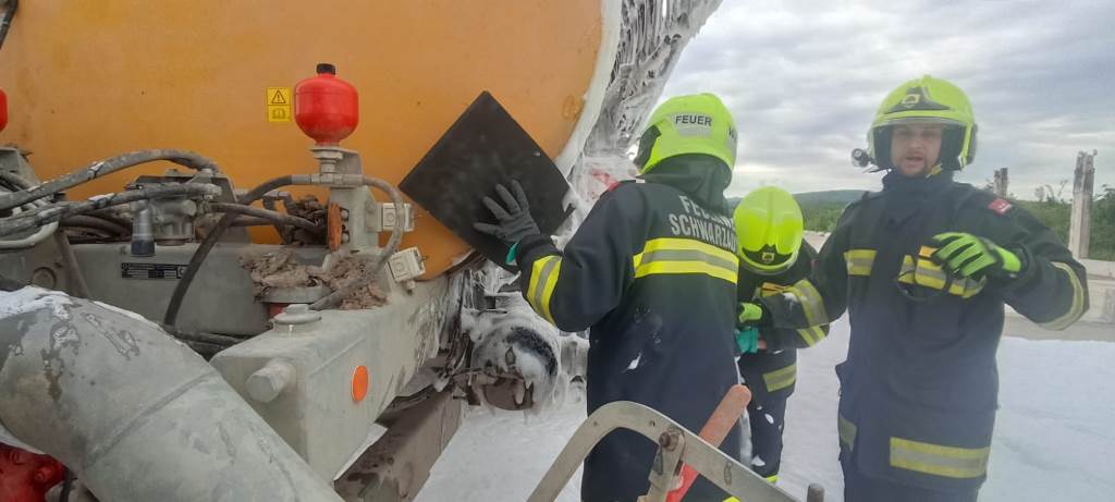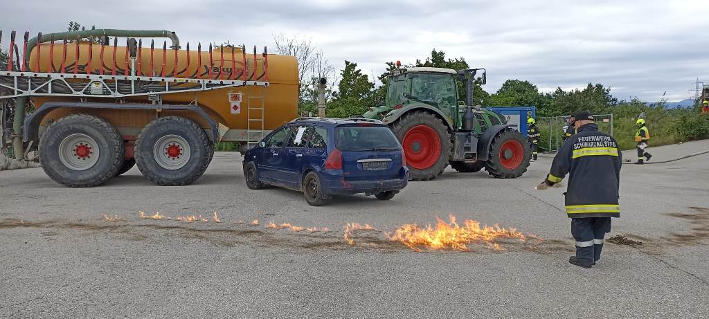 Am Sonntagvormittag, den 29. Mai 2022 fand im ehemaligen Hühnerstall die 3. Frühjahrsübung der FF Schwarzau am Steinfeld statt. Die Übungslage war, ein PKW fuhr gegen ein Tankfahrzeug aus der Flüssigkeit austrat. Das Tankfahrzeug wurde bei der Übung mit einem Traktor und Güllefass dargestellt.