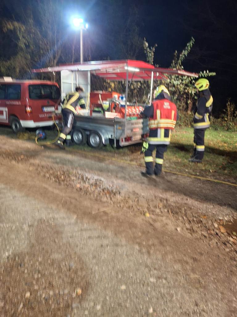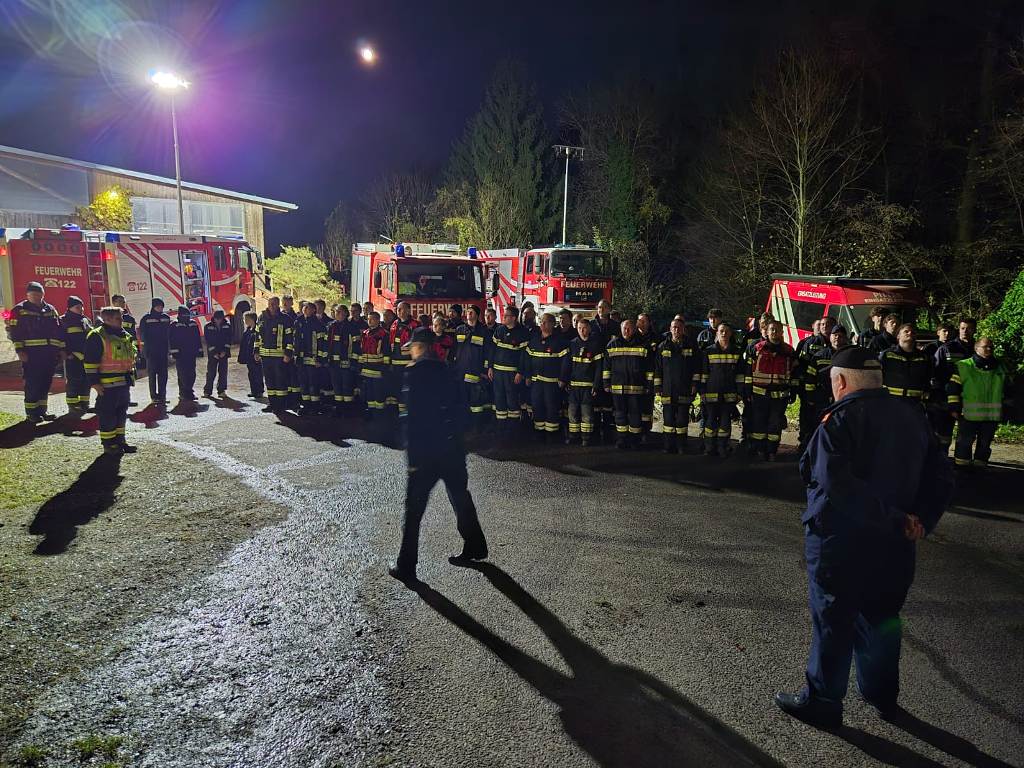Da der Übungsort sehr abgelegen war, dauerte die Anfahrt länger. Das HLF3 stellte 3 Atemschutzträger, um bei der Suche nach den vermissten Personen teilzunehmen. Das MTF fuhr mit dem Atemluftkompressor nach und baute die Atemfüllstelle auf.