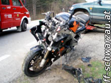 Beim abbiegen auf die B54 Richtung Wiener Neustadt kam der Lenker eines PKWs auf die Gegenfahrbahn und wurde von einem Motorradlenker auf der vorderen rechten Seite gerammt. Als die Feuerwehr Schwarzau/stfld. am Unfallort eintraf, war die Polizei bereits vor Ort und sicherte die Unfallstelle ab. Nachdem die Polizei den Unfallort untersucht hat,