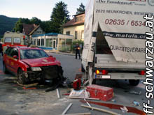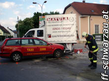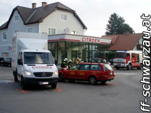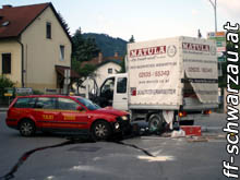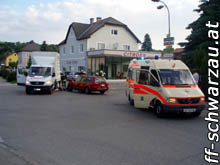 Da die Feuerwehr Pitten gerade ihr Volksfest hatte, wurde die Feuerwehr Schwarzau/Stfld. zu einem Verkehrsunfall nach Pitten im Kreuzungsbereich Citroenhändler alarmiert.