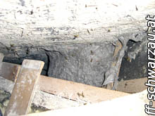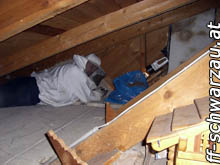 Da man die Wespen am Dach ein- und ausfliegen sah, musste das Nest erst gesucht werden. Unter einer Dämmwolle am Dachboden wurde man schließlich fündig und die Entfernung des Nestes wurde begonnen.