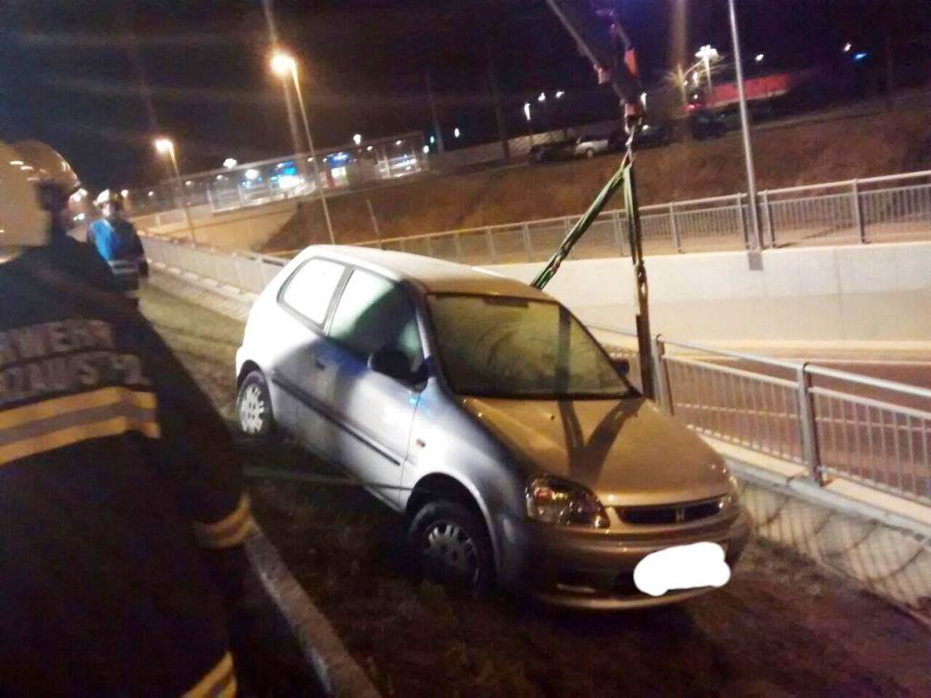 Ein PKW Lenker kam bei der Ausfahrt des Parkplatzes von der Fahrbahn und rutschte in die Böschung. Mit Hilfe des Kranes konnte das Fahrzeug sicher auf die Straße befördert werden.