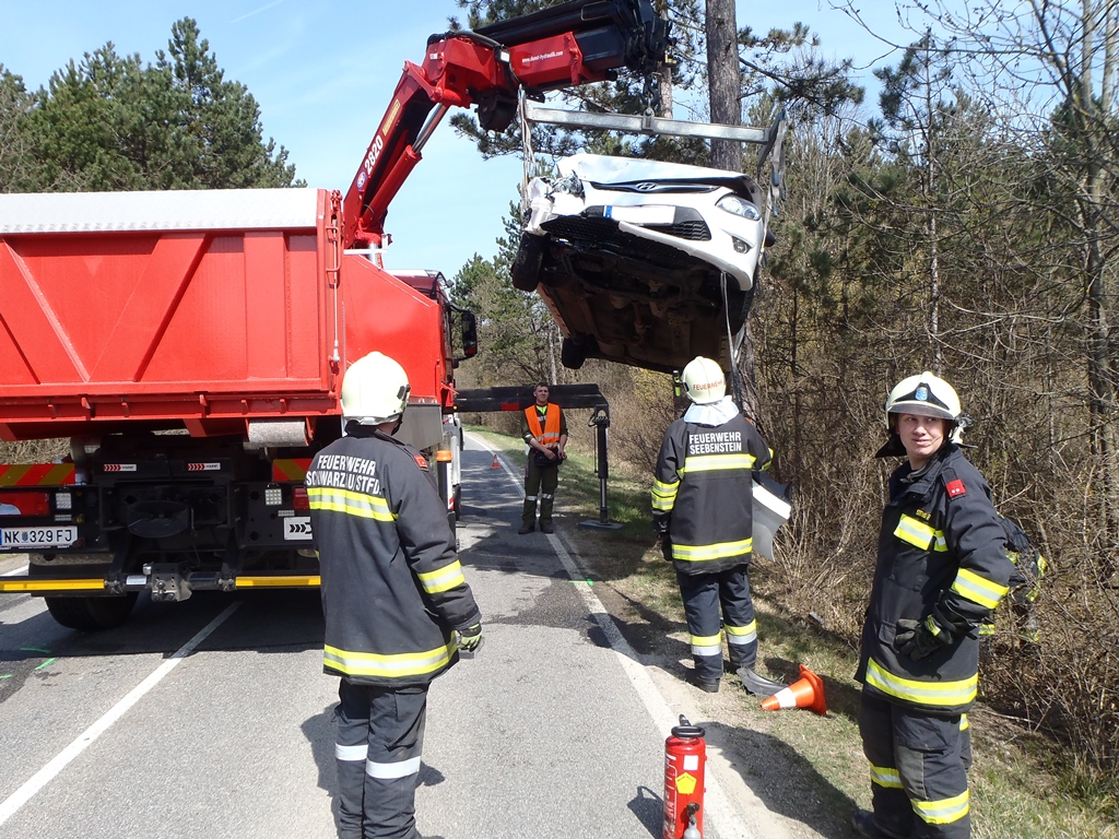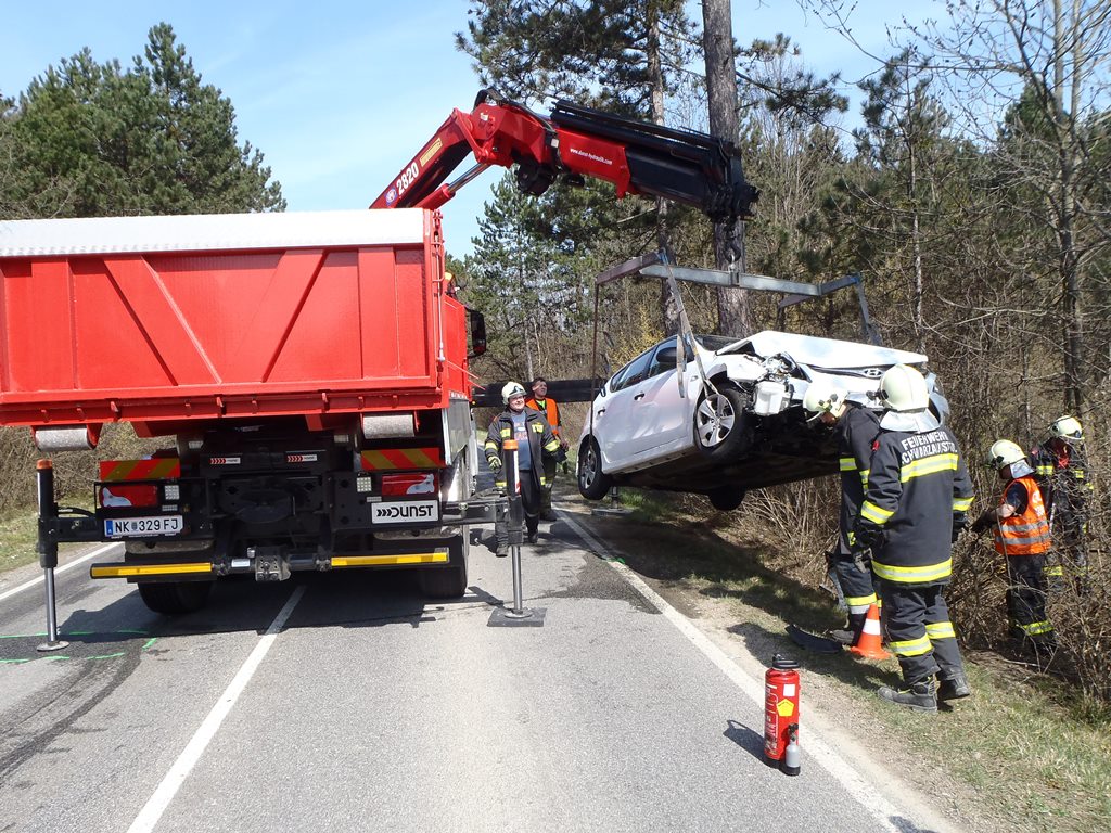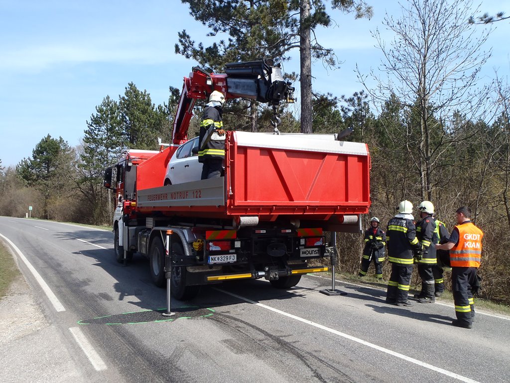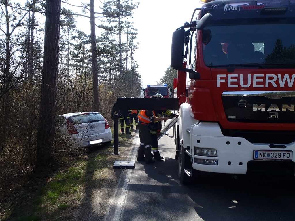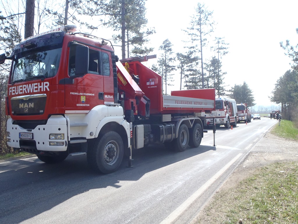 Gegen 11 Uhr Vormittag wurde die Feuerwehr Schwarzau zu einem Verkehrsunfall auf der L4110, "Triftstraße".