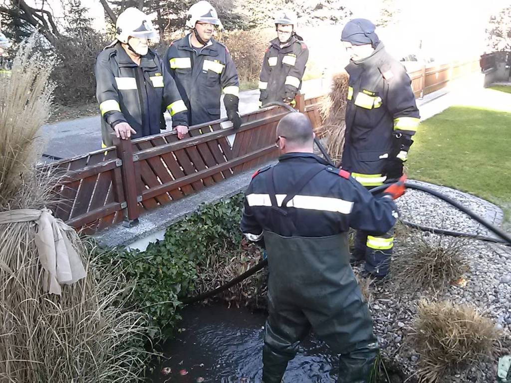 war unter einer Straßenführung durch Äste, Äpfel und anderen Unrat der nicht hineingehört, so verstopft, dass es zur Verklausung kam. Dadurch kam es im angrenzenden Garten zur Überschwemmung.