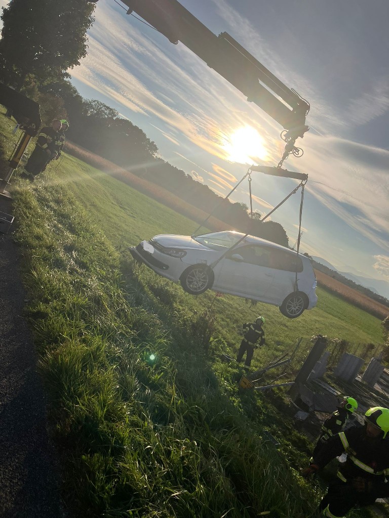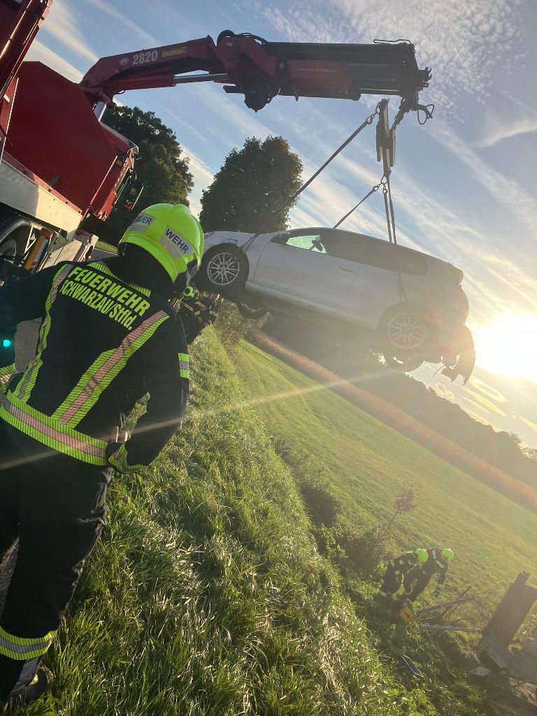 Der im Straßengraben befindliche PKW wurde anschließend durch das Kranfahrzeug der FF Seebenstein geborgen und von der Unfallstelle entfernt.