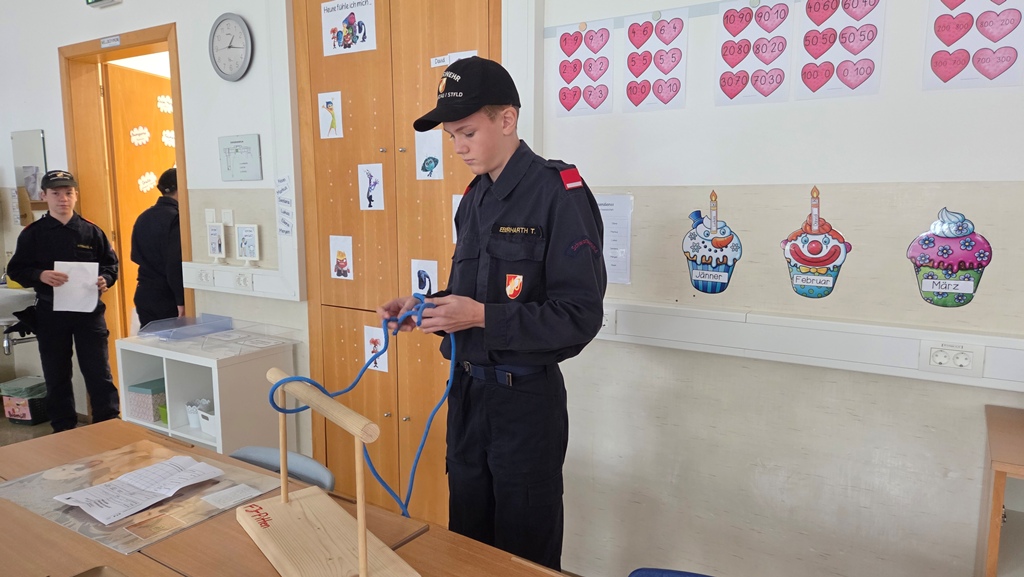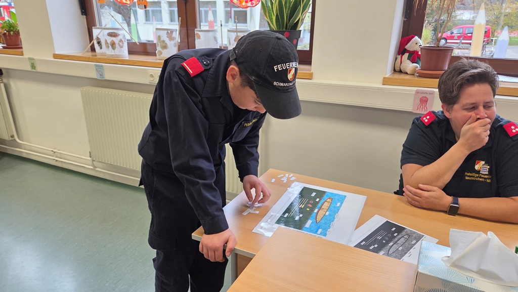 Am 8. November 2025 absolvierte die Feuerwehrjugend das Fertigkeitsabzeichen „Sicher zu Wasser und am Land“ in der MS Pitten.