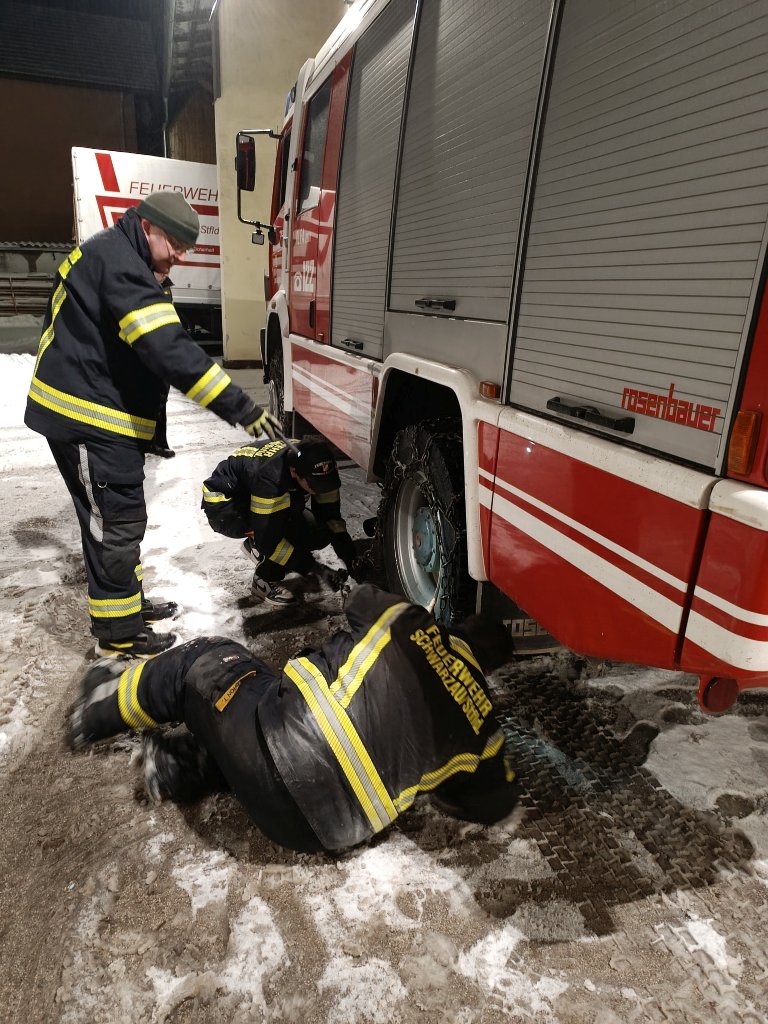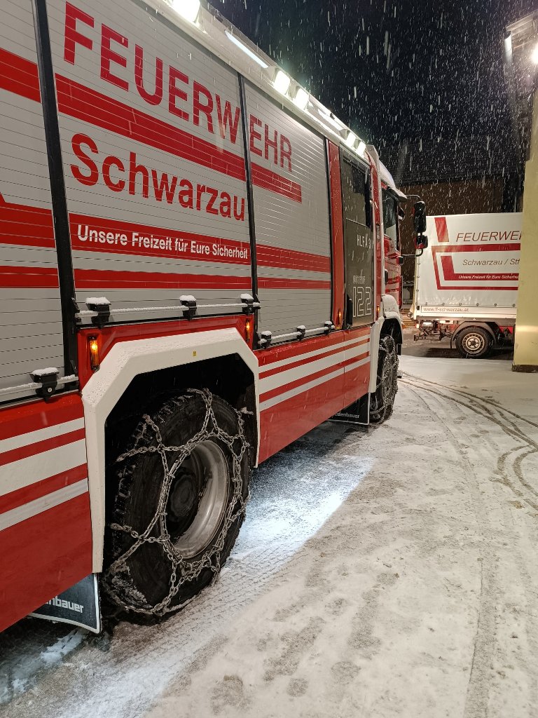 Durch den starken Schneefall am 12. Jänner 2026 wurden bei den Einsatzfahrzeugen Schneeketten montiert, Damit wir auch Schnee Einsatzbereit sind. Fotos: ff-schwarzau.at